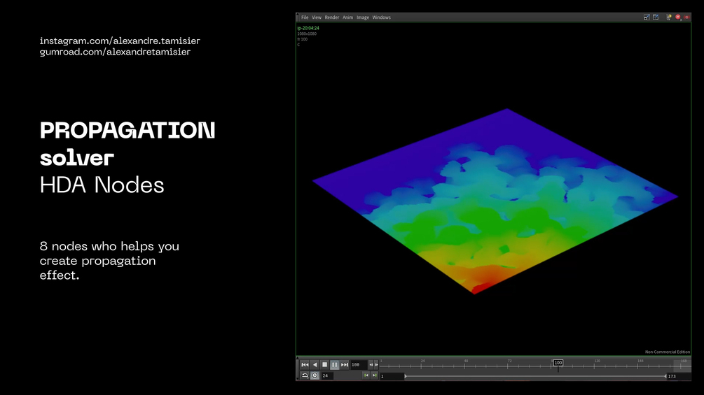 Node pack to help beginners or those who want to save time to achieve complex propagation effects. There are 5 propagation creation nodes including one without the use of a solver. A "Post Process" node to obtain results different from our original propagation effect. Finally, 2 utility nodes to further accelerate your propagation effect workflow, also quite useful in your workflow in general.